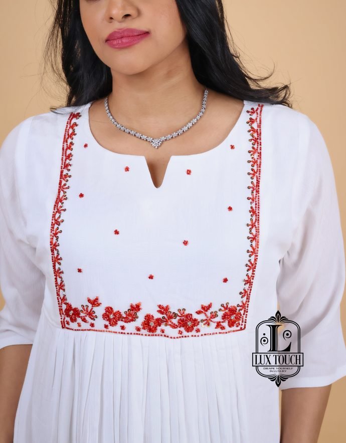 SKU: FR12-WHTE CENTRAL PLEATES Categories:Handwork Kurtis, New arrivals Tag:Casual
