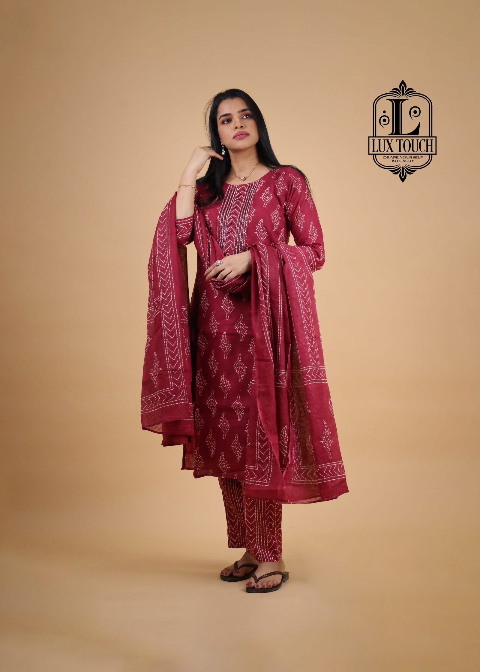 COTTON PRINTED SUIT SET WITH DUPATTA