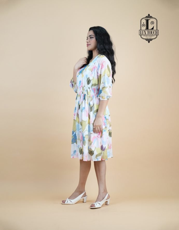 A Georgette Floral Dress blends lightweight, flowing georgette fabric with a vibrant floral print, creating a breezy, feminine look. Soft and sheer, it drapes beautifully, offering effortless elegance for any occasion—whether it’s a casual day out or a romantic evening.