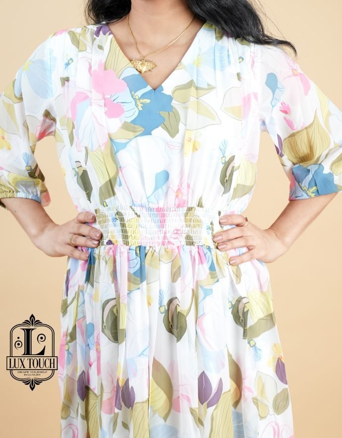 A Georgette Floral Dress combines the lightweight, flowy elegance of georgette fabric with the timeless beauty of floral patterns. This dress is perfect for any occasion where you want to feel both comfortable and stylish. The soft, sheer texture of georgette adds an airy, feminine touch, while the floral design brings vibrant color and charm to your look.