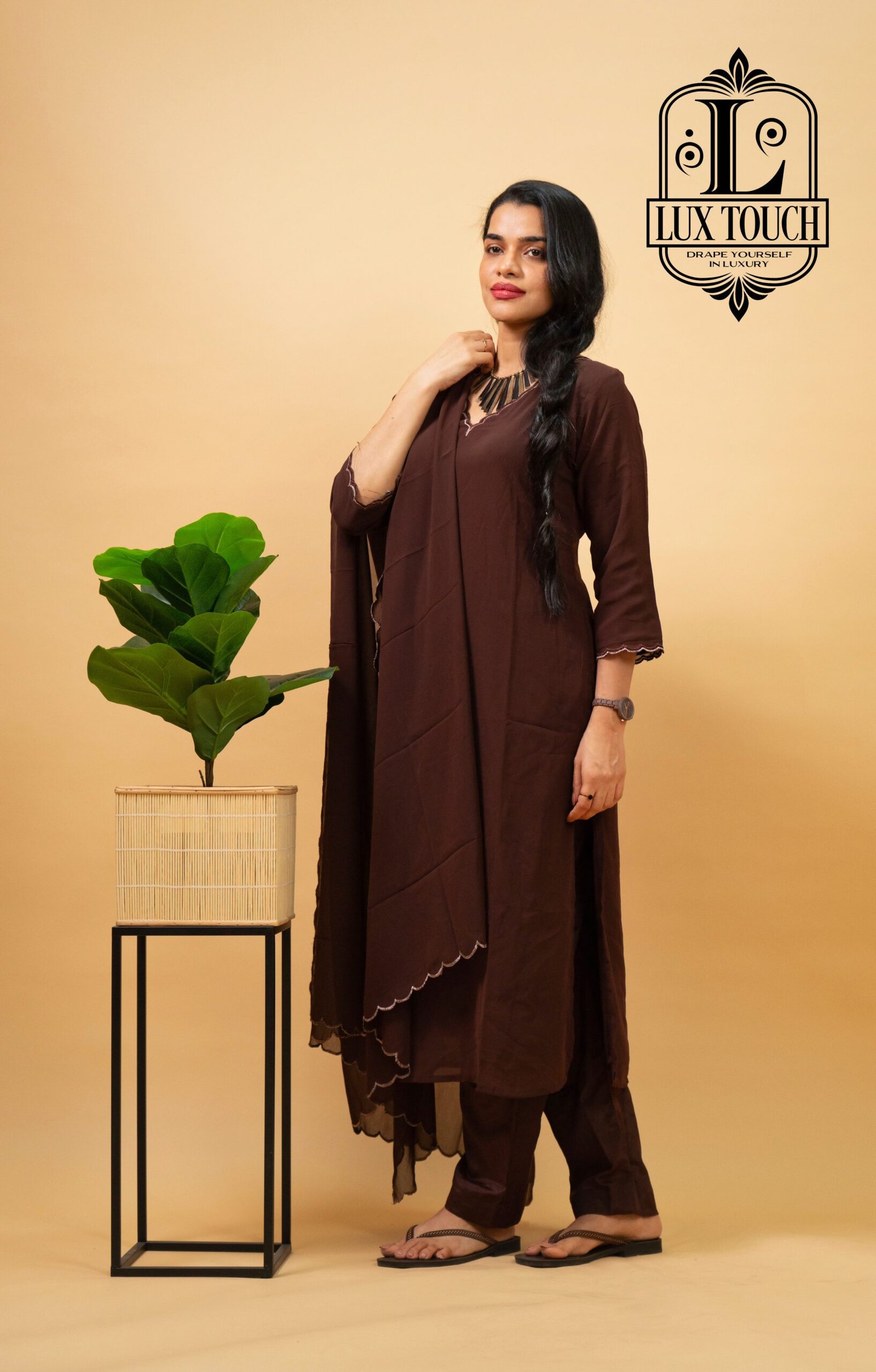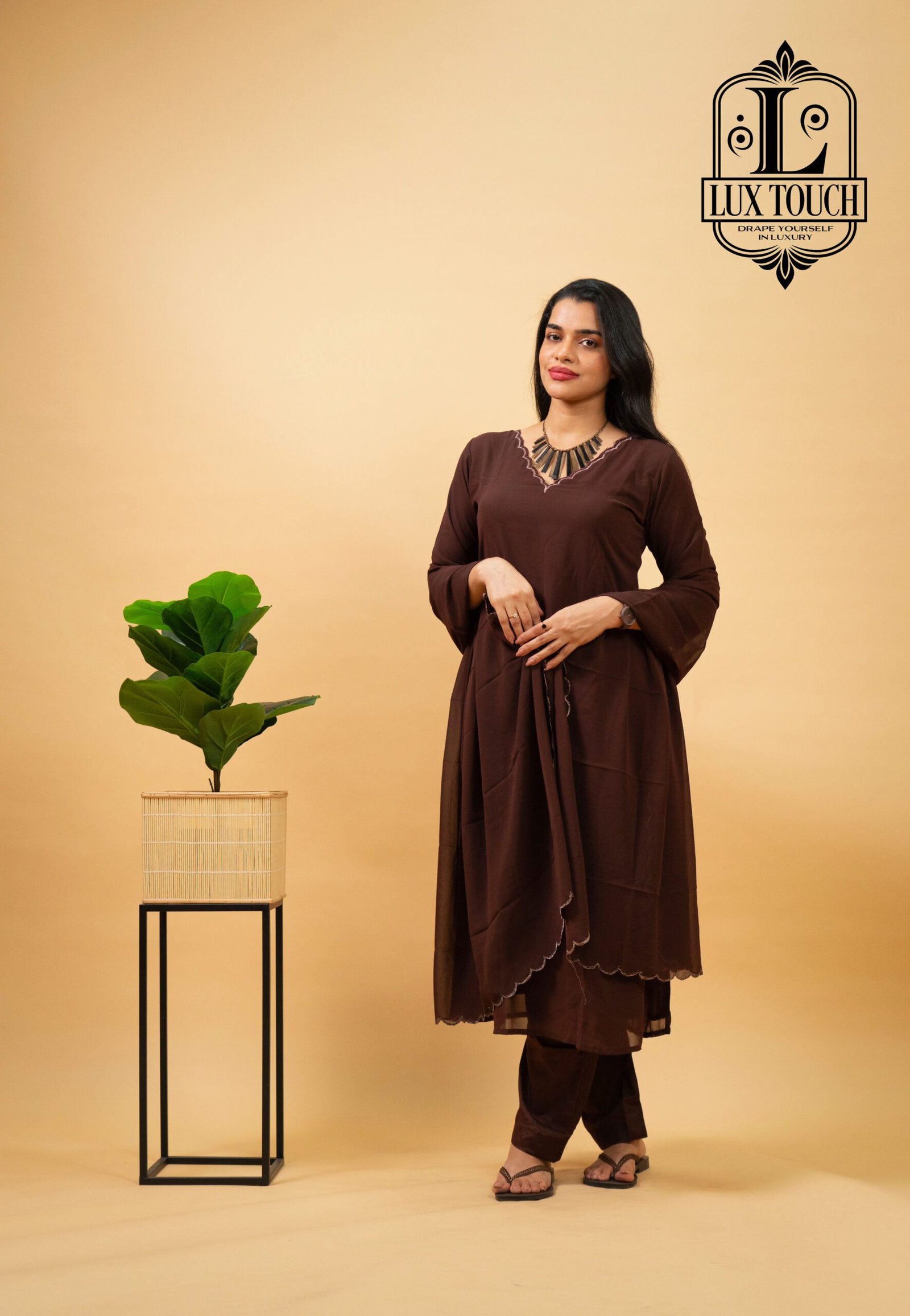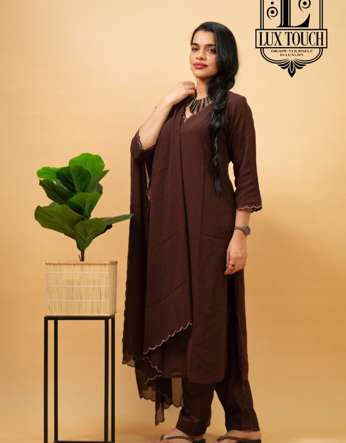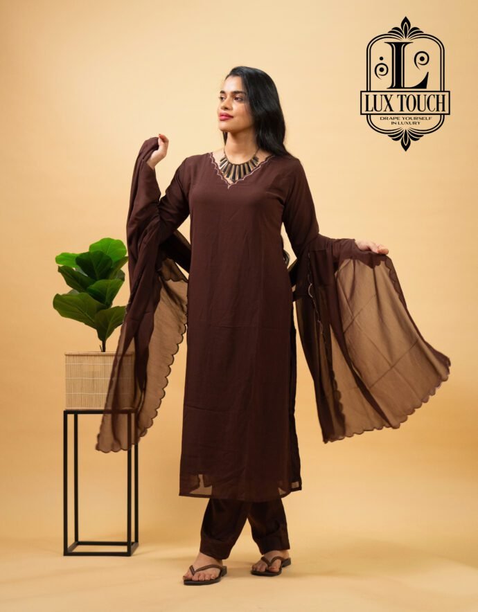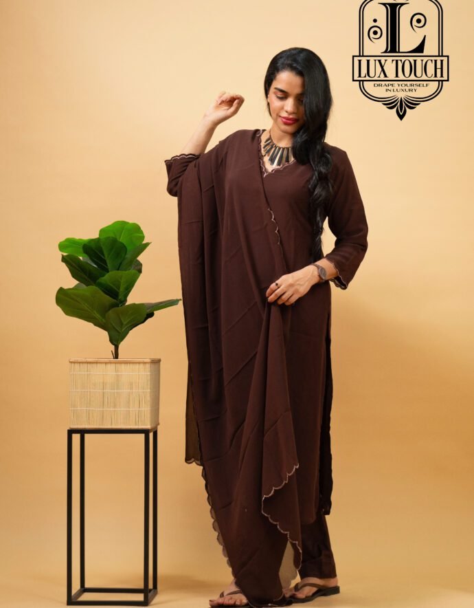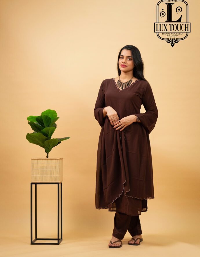 The PLAIN SCALAP HIGHLIGHTED SUIT SET combines classic sophistication with contemporary charm. Made from premium-quality fabric, this ensemble showcases scalloped borders that add a refined touch to the design. Subtle highlights along the edges lend a hint of glamor without overpowering the minimalist appeal, making it versatile for both formal events and casual gatherings. The breathable, soft material ensures comfort throughout the day, while the flattering silhouette complements various body types.