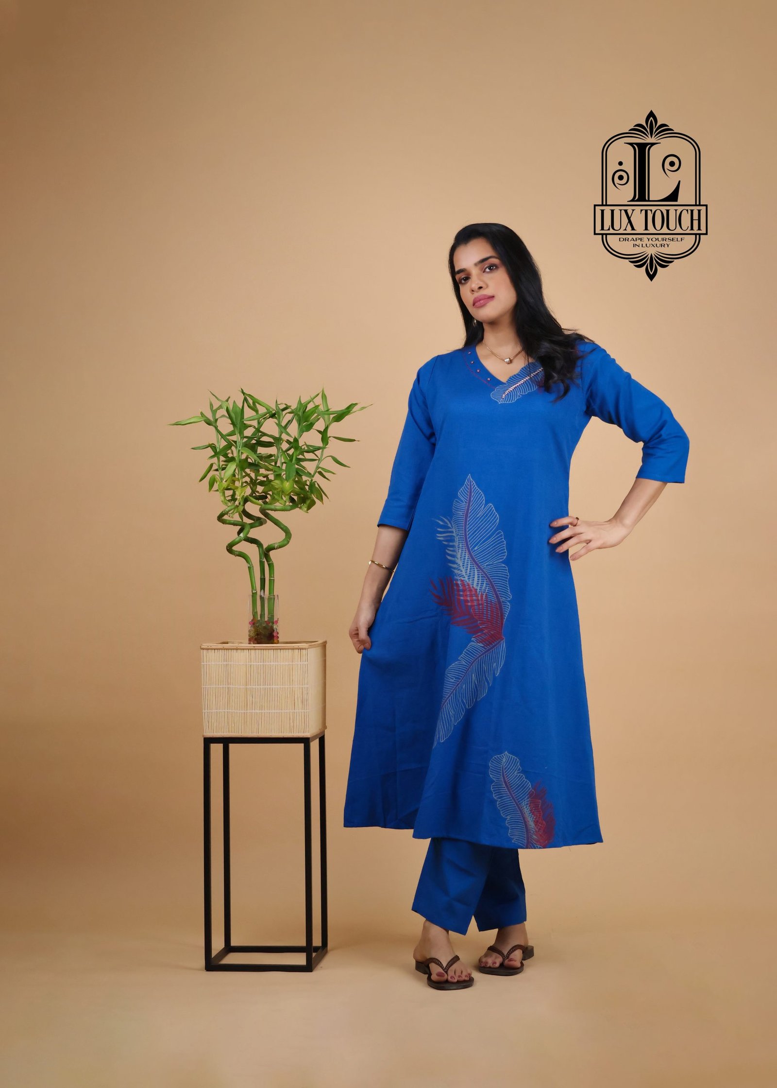 The Premium Khadi Hand Embroidered collection showcases the perfect blend of traditional craftsmanship and modern elegance. Made from high-quality khadi fabric, known for its natural texture and breathable qualities, this garment is both comfortable and eco-friendly. The hand-embroidery, often featuring intricate floral, geometric, or traditional motifs, adds a touch of artistry and sophistication to the fabric.