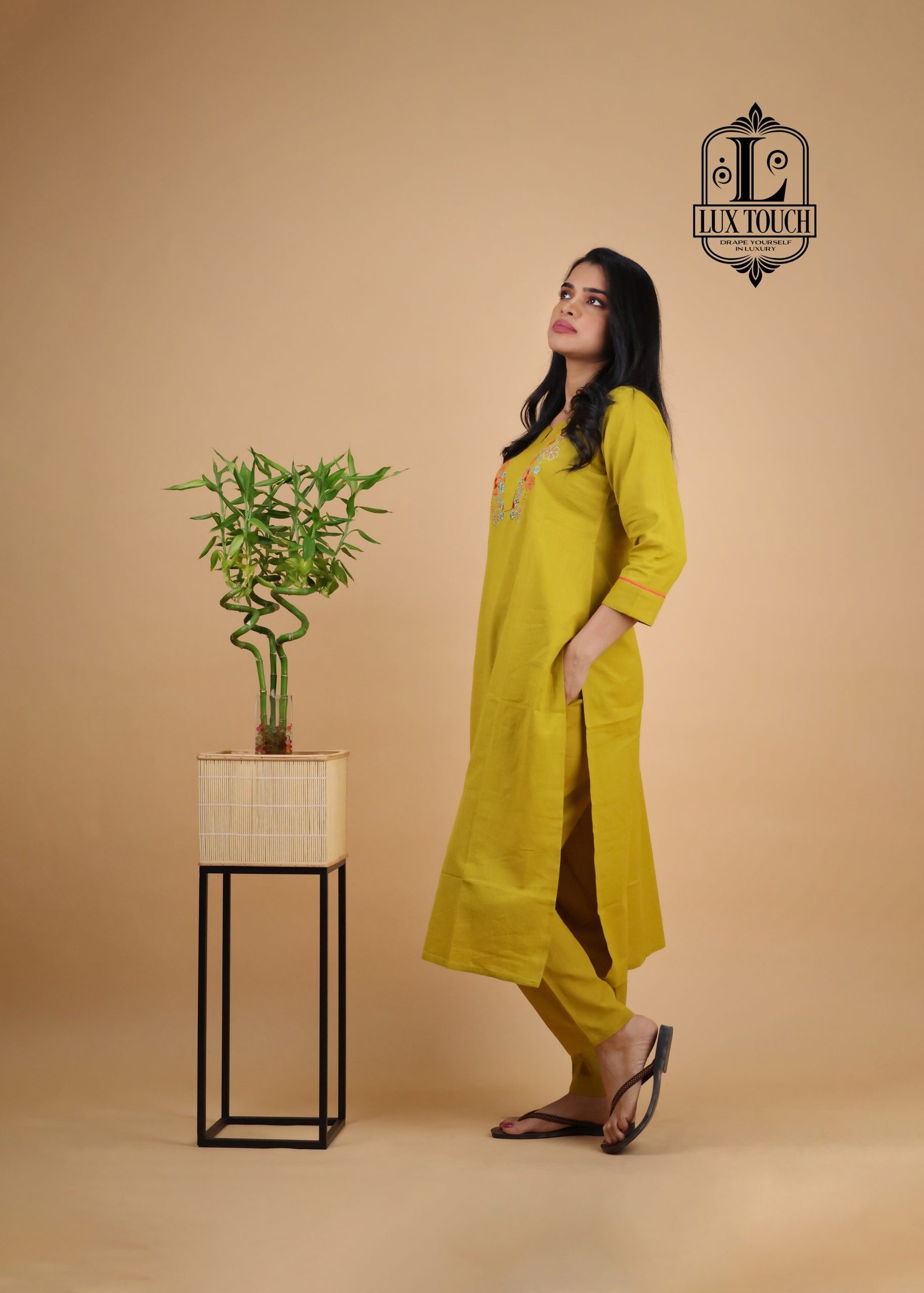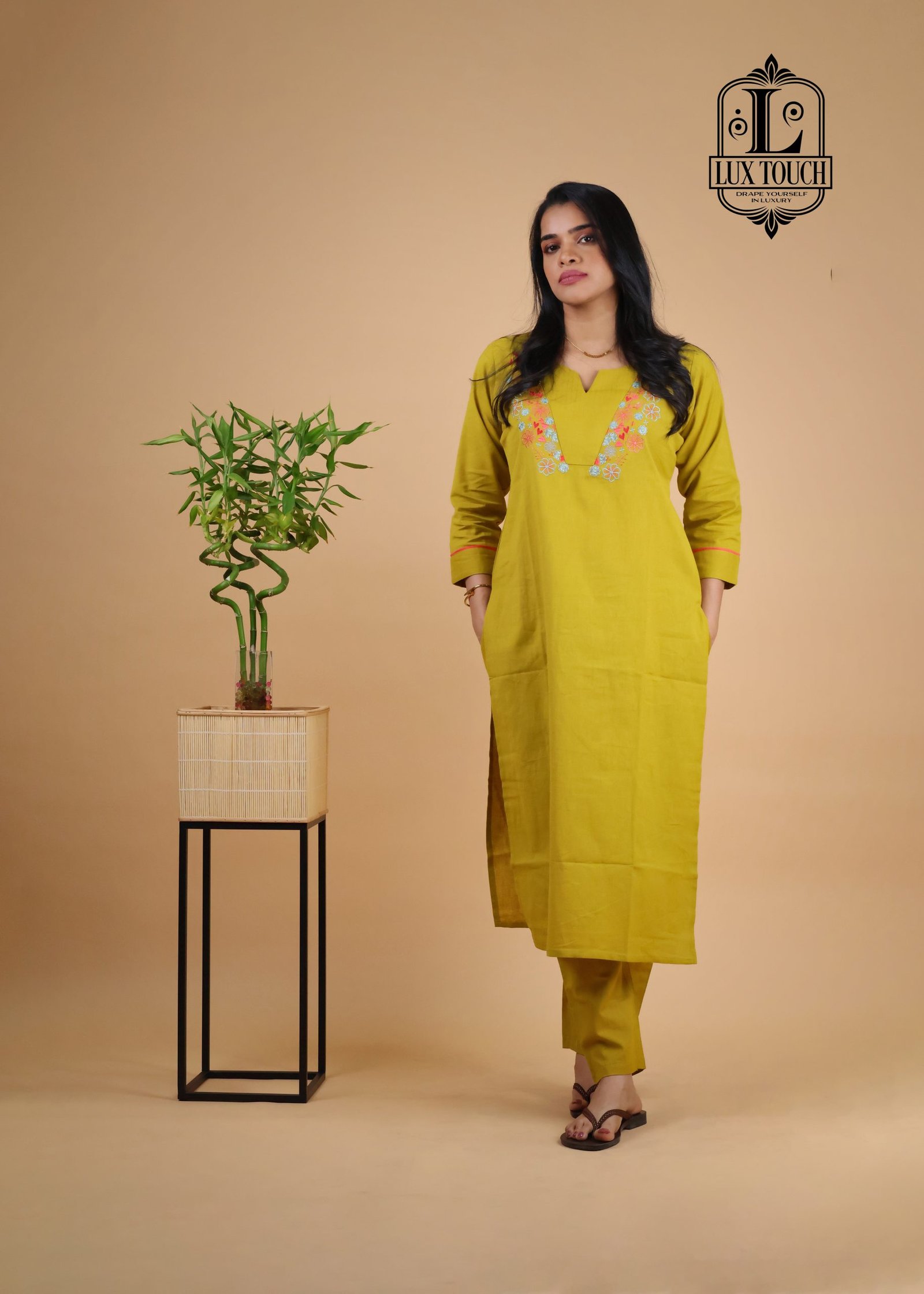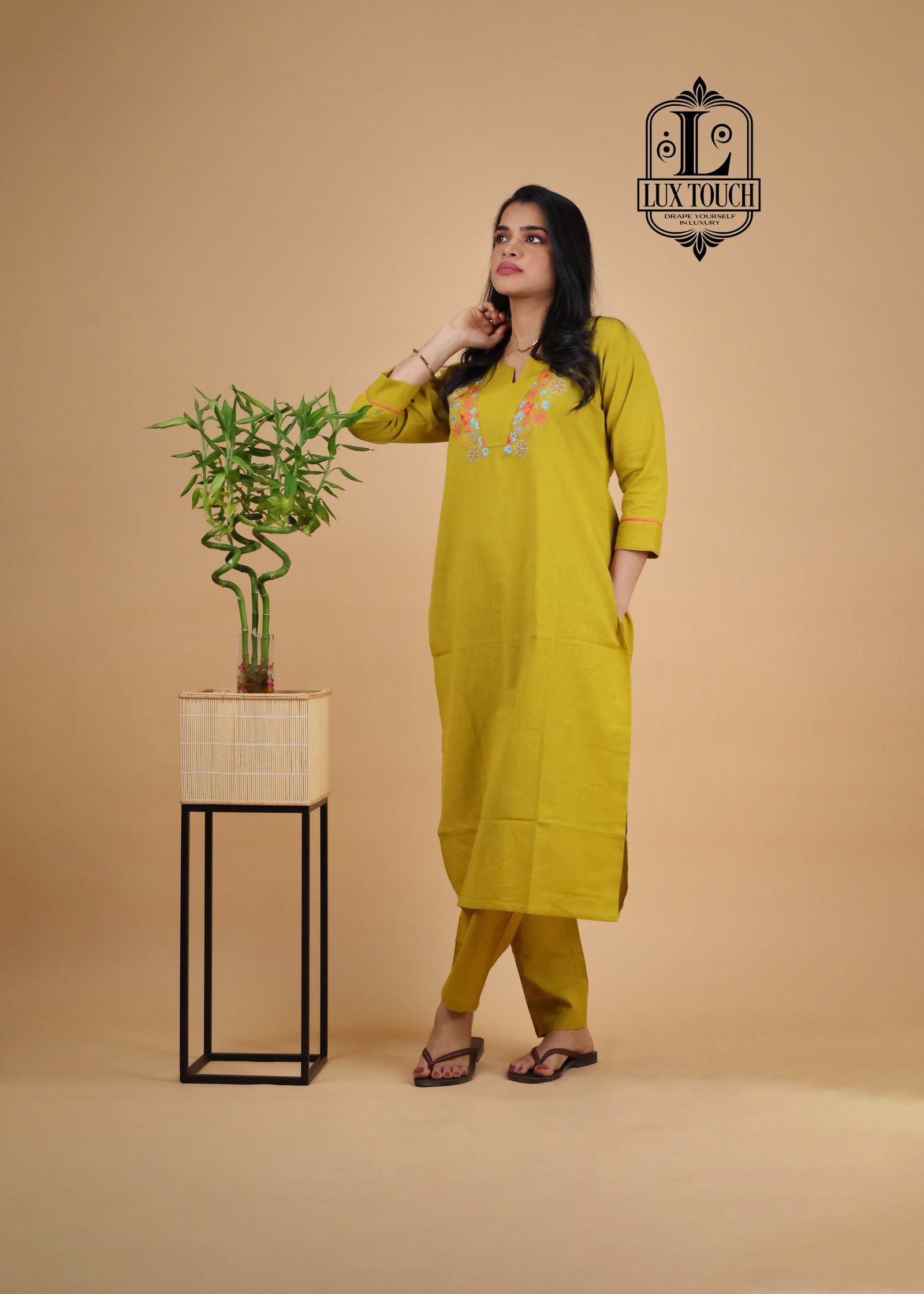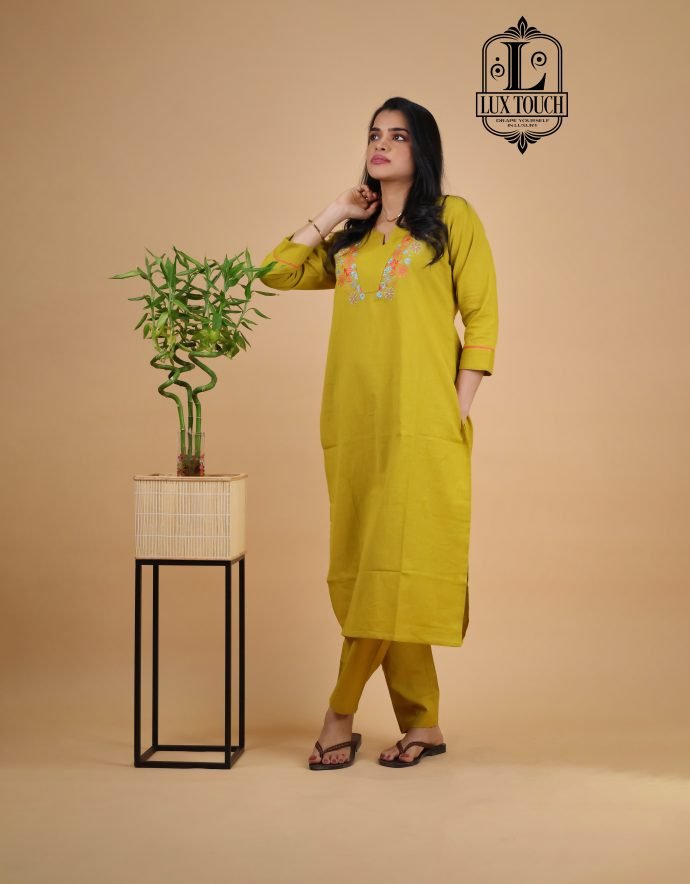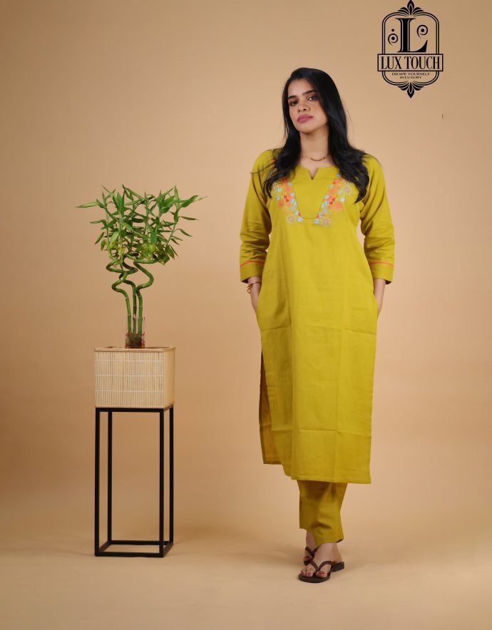 The Khadi Cotton Embroidered piece combines the natural comfort of khadi cotton with intricate embroidery. The soft, breathable fabric is adorned with delicate, hand-stitched designs, adding a touch of elegance to this timeless, eco-friendly garment. Perfect for casual or semi-formal occasions, it offers both style and comfort.