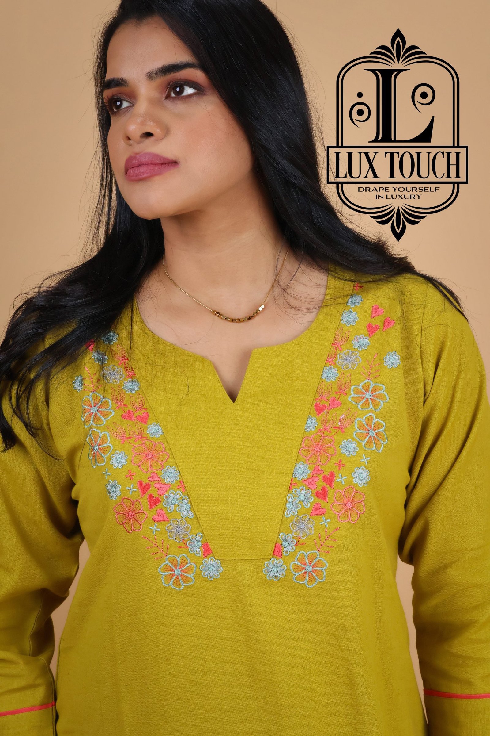 The Premium Khadi Hand Embroidered collection showcases the perfect blend of traditional craftsmanship and modern elegance. Made from high-quality khadi fabric, known for its natural texture and breathable qualities, this garment is both comfortable and eco-friendly. The hand-embroidery, often featuring intricate floral, geometric, or traditional motifs, adds a touch of artistry and sophistication to the fabric.