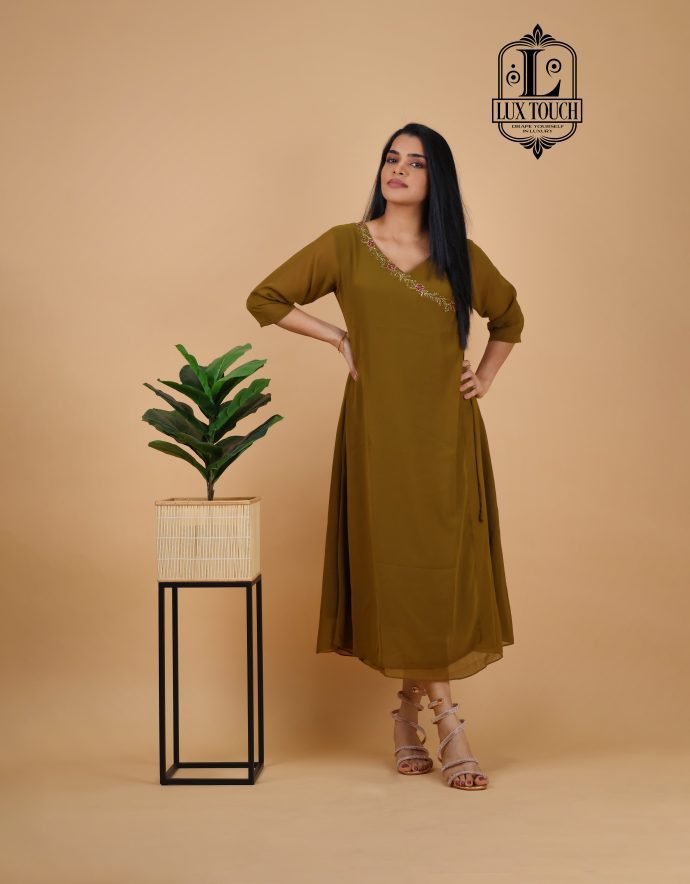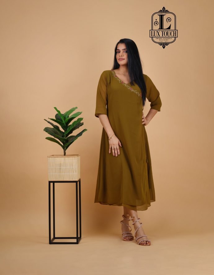 Overlap Type blends traditional craftsmanship with modern design. Featuring intricate semi-handwork embroidery, this kurti boasts beautiful detailing, combining machine embroidery with delicate hand embellishments. The stylish overlap design adds an elegant twist, creating a flattering, asymmetrical look. Perfect for festive occasions or casual gatherings, this kurti is made from high-quality fabric and offers a comfortable, chic fit.