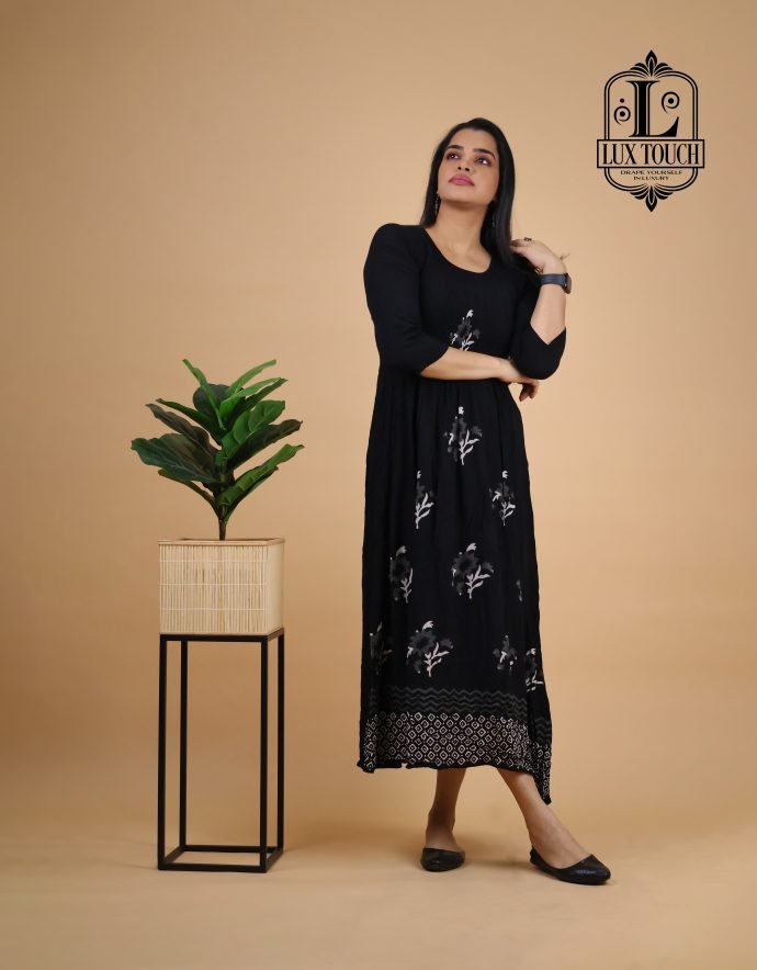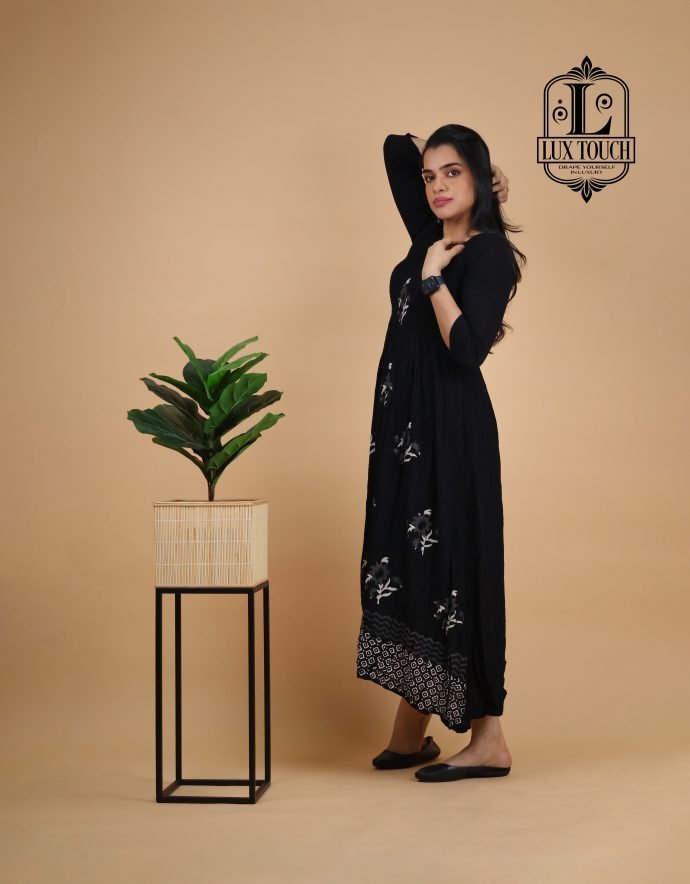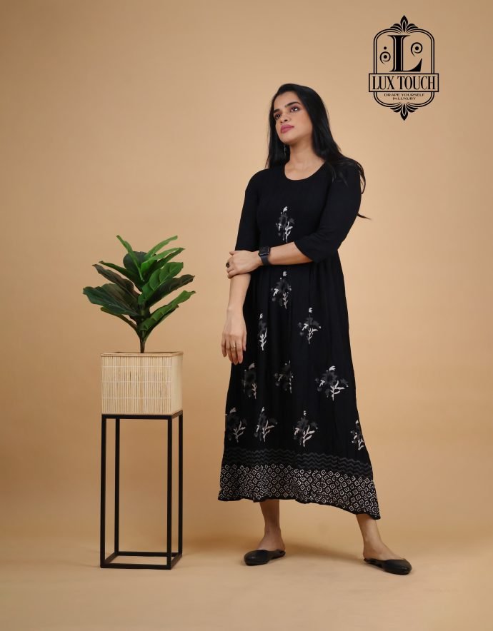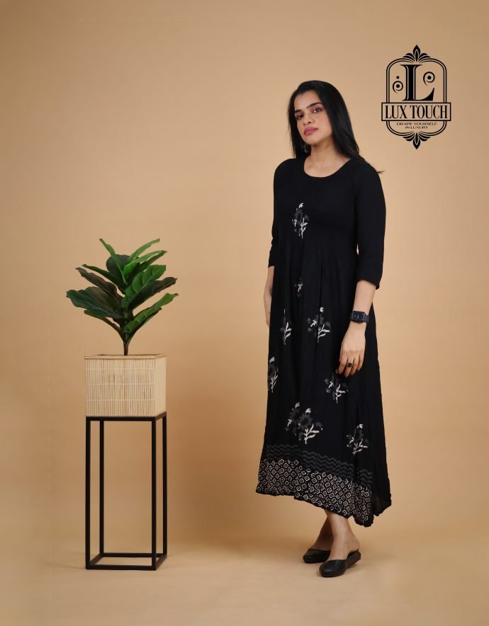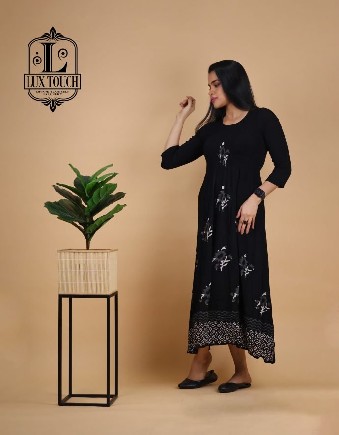 The Smokey Dress combines elegance and modern style with its captivating smokey effect—a beautifully faded, gradient pattern that creates a stunning visual impact. The dress features a subtle blend of deep, smoky tones, transitioning seamlessly from light to dark, adding depth and dimension to its design.